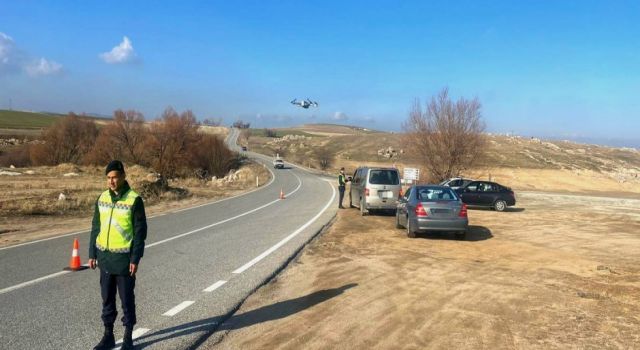 Aksaray’da trafikte huzur ve güven ortamının sağlanabilmesi için çalışmalarını sürdüren jandarma ekipleri drone destekli denetim gerçekleştirdi.